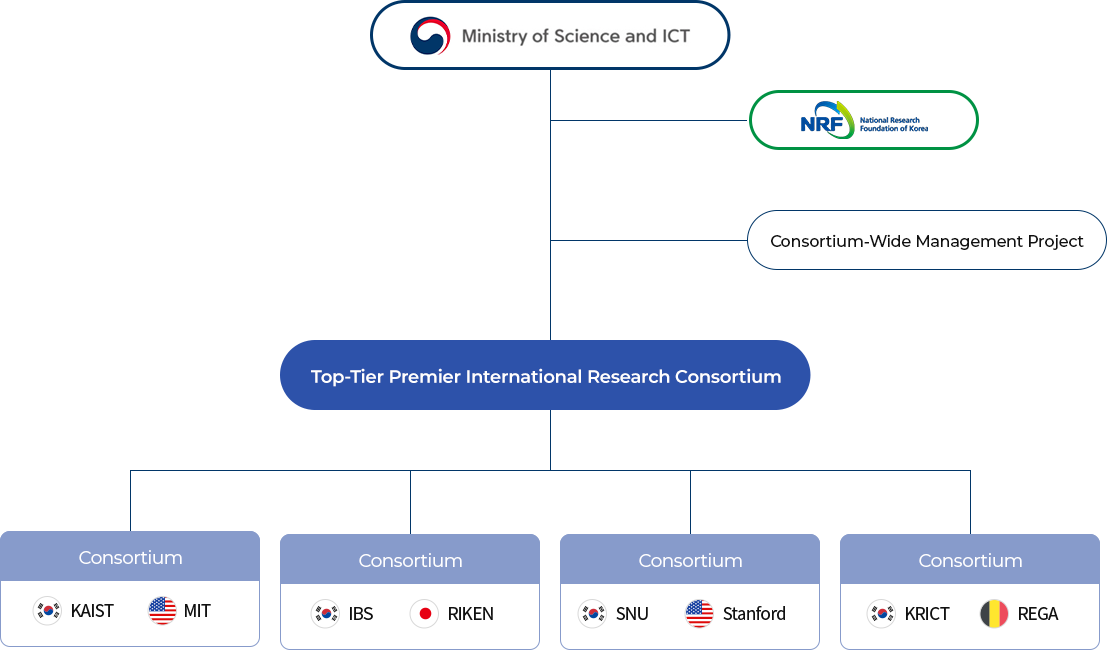 The Top-Tier Program comprises four research projects and one management project, organized as consortia between Korean and international research institutions.